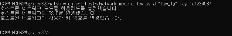 netsh wlan set hostednetwork mode=allow ssid="WIFI NAME" key="WIFI PASS"