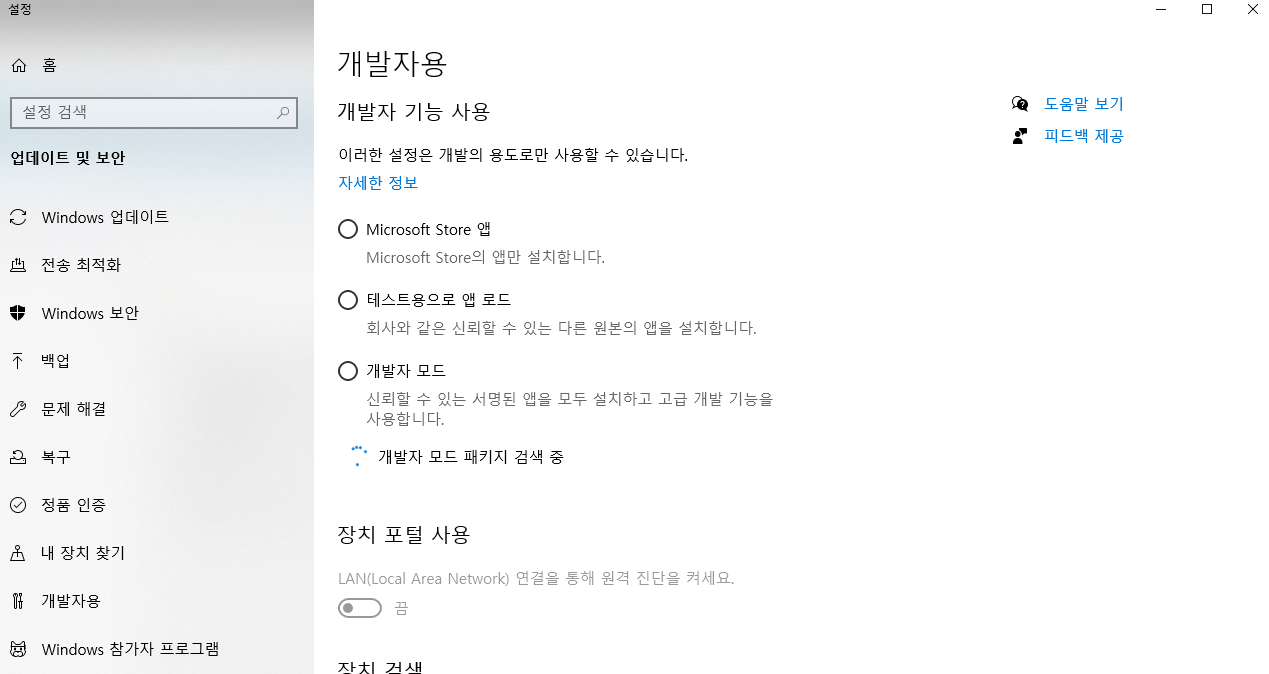 개발자 모드로 변경이 완료되면 다시 검색창(wind키+s)에서 "windows 기능 켜기/끄기" 검색
