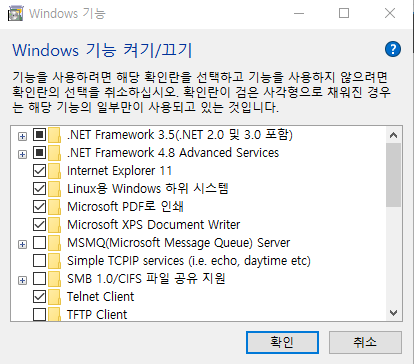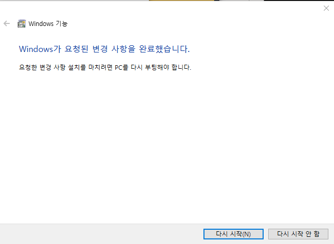(실행 시 윈도우 하위기능 설치 오류가 발생 시 아래 오류처리 참고)