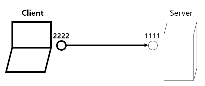 클라이언트(IP : 10.0.2.16)에서 소켓(PORT : 2222) 생성 후 서버(IP : 10.0.2.15)의 소켓(PORT : 1111)으로 접속을 시도한다. (SENT)