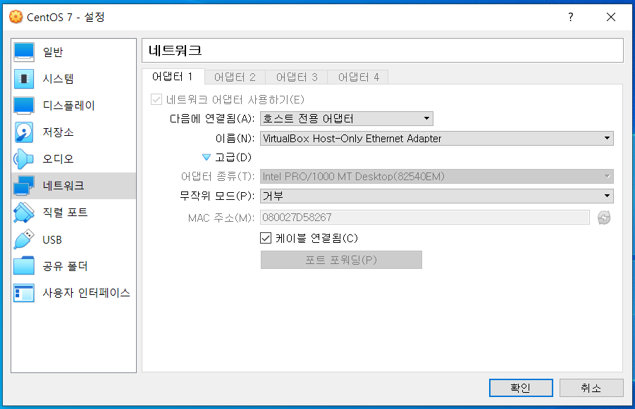 그리고 VirtualBox를 통해서 가상시스템 생성 후 제일 처음으로 골치를 썩히는게 바로 네트워크 설정일 것이다.