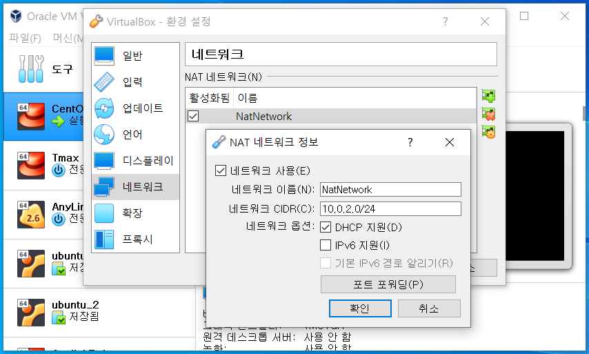 - Virtual Box 가상머신에 NAT 네트워크 설정 추가