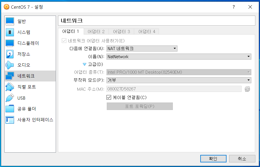 - 가상시스템에 NAT 네트워크 연결