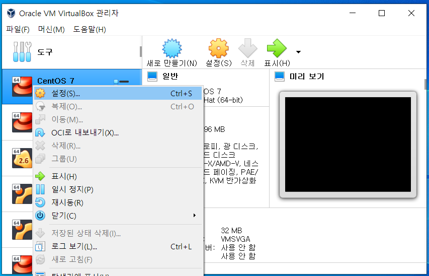 5. 가상시스템 우클릭 > 설정