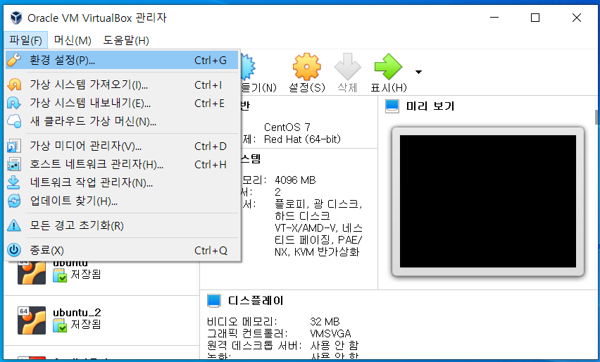 - 가상시스템 우클릭 > 설정