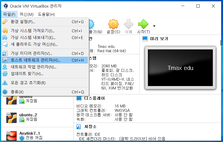 가상머신(VM)으로 가장 많이 사용하는 프로그램 중 하나로 Oracle사의 VirtualBox가 있다.