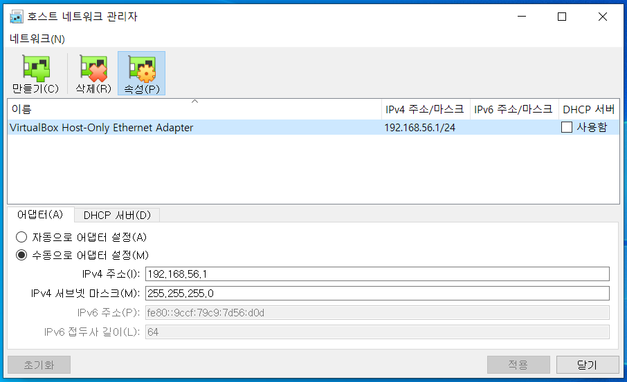 호스트 전용 어댑터 설정