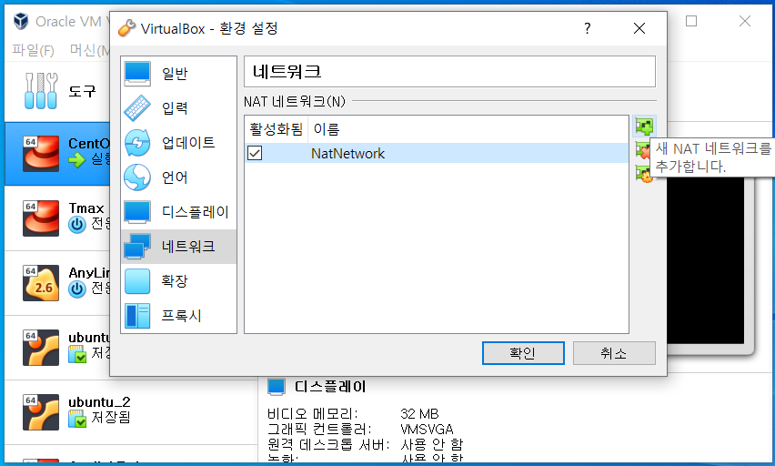 2. 네트워크 > 새 NAT 네트워크 추가