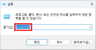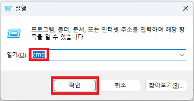 b. 실행창에서 cmd 입력 후 확인 버튼 클릭
