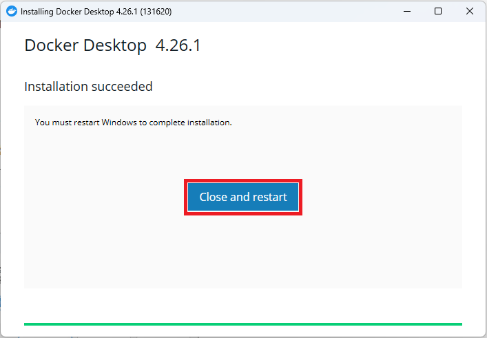 c. 설치 완료 후 Close and restart 버튼을 클릭해서 윈도우 재시작