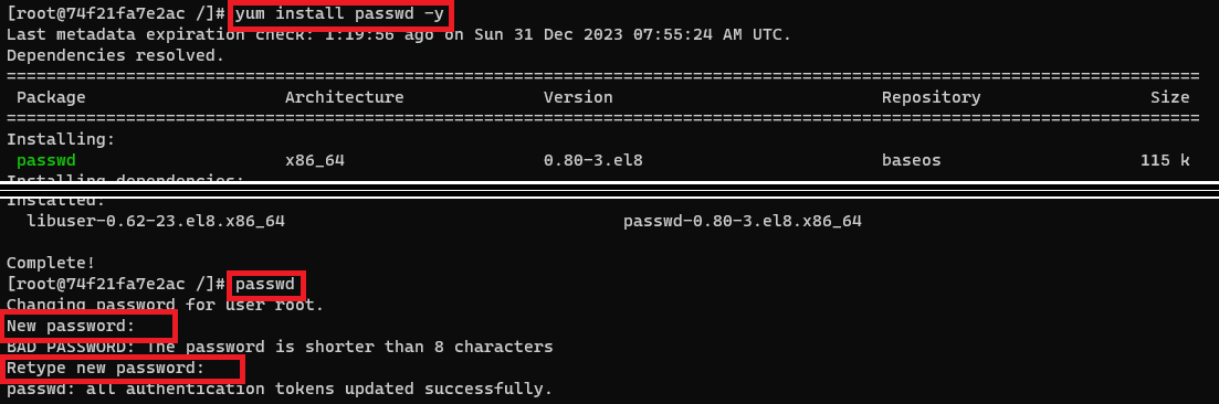 b. passwd 명령어로 root 계정 비밀번호 설정