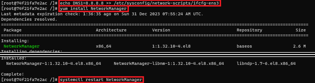 b. yum install NetworkManager -y 명령어로 NetworkManager 설치