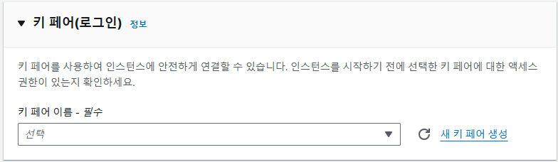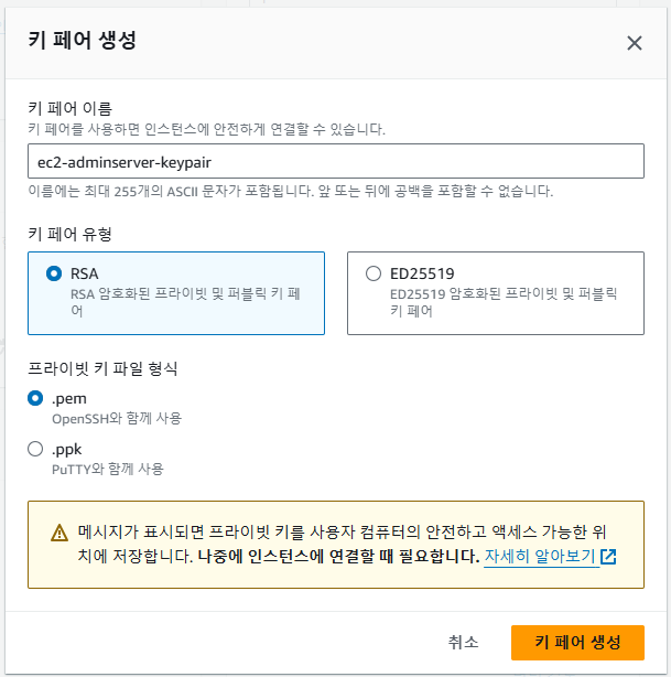 원격 접속을 위해서 새 키 페어를 생성 해준다.