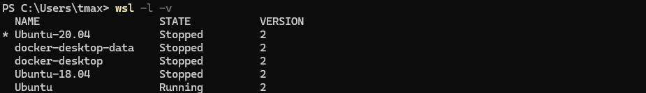 wsl -l -v