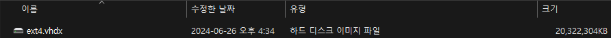 - 윈도우 파워쉘에서 아래 명령어를 통해서 배포된 wsl 의 .vhdx 파일 및 디스크 경로를 찾을 수 있다.