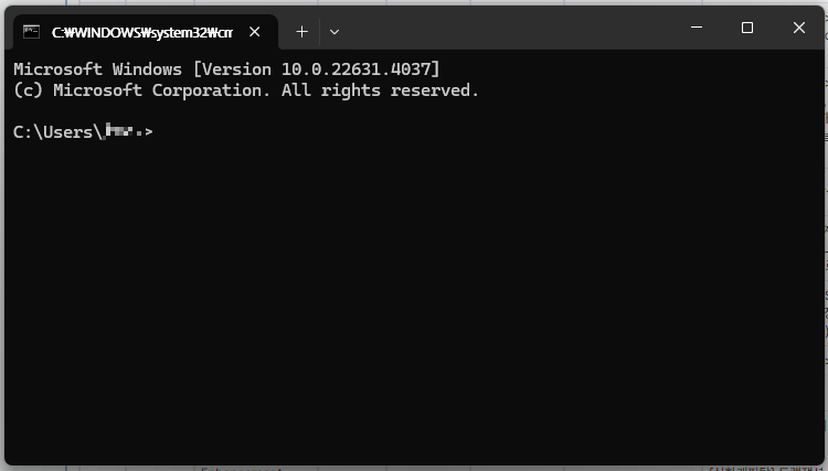 1. [Win] + [R] 키 입력 후 실행 창에서 "cmd" 입력하여 명령 프롬프트 창을 연다.